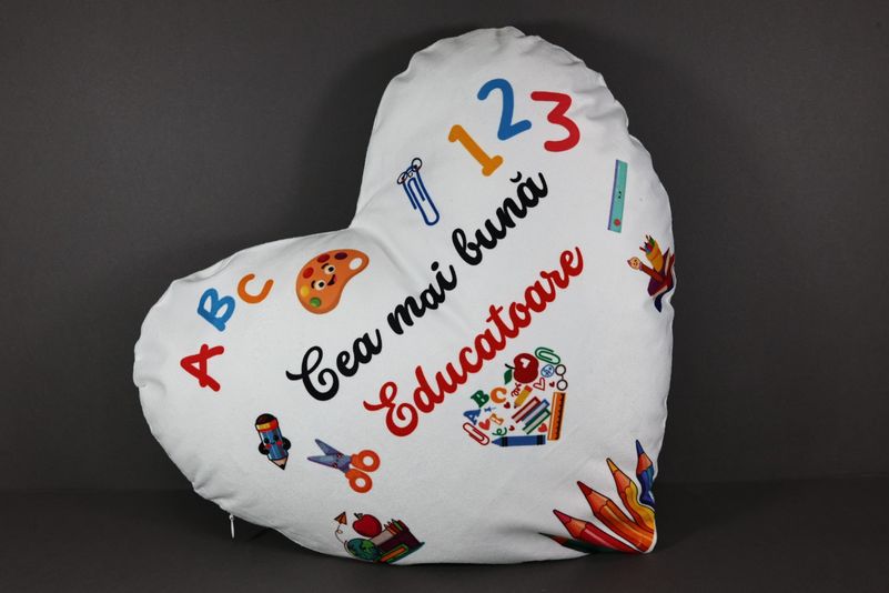 Surprinde persoanele care contribuie la educația copiilor cu un cadou special și plin de emoție. Această pernă în formă de inimă, realizată din material Cocolino de foarte bună calitate, este moale, plăcută la atingere și perfectă pentru a fi oferită în dar.