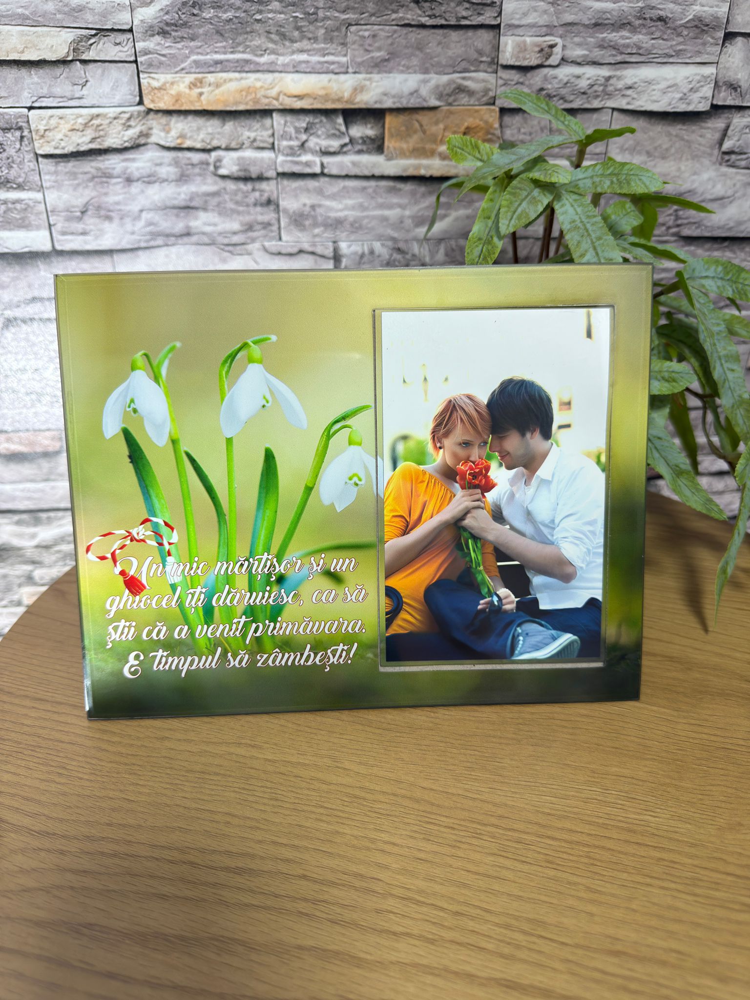 O ramă specială, cu design delicat de primăvară și mesaj emoționant, perfectă pentru a oferi un cadou simbolic de 1 sau 8 Martie. Combinația dintre ghiocei, șnur de mărțișor și fotografia personală creează un obiect decorativ plin de căldură și sentiment.