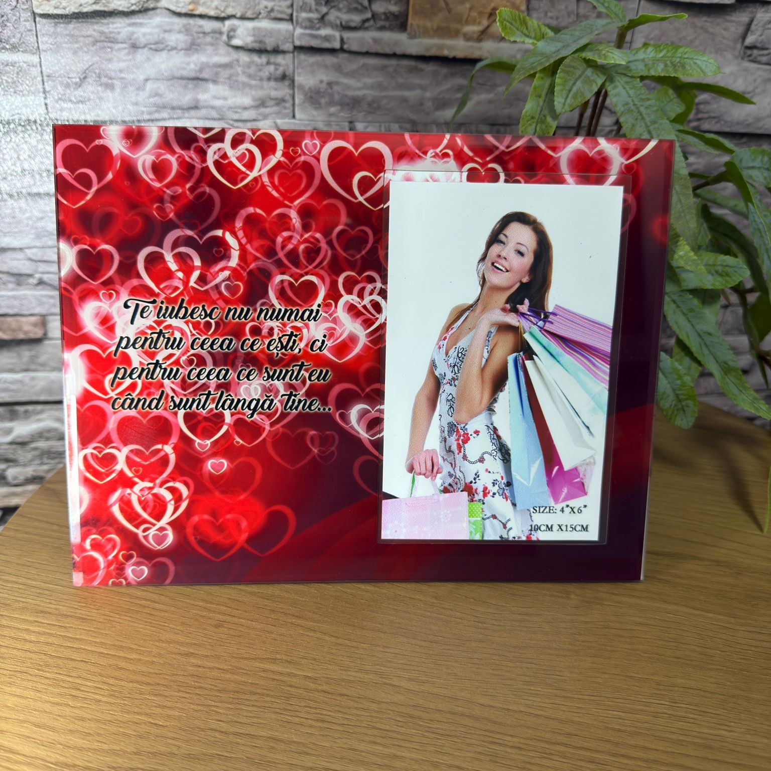 Surprinde persoana iubită cu o ramă elegantă din sticlă, decorată cu inimioare roșii și un mesaj plin de emoție. Un cadou care vorbește despre iubire, conexiune și momentele speciale petrecute împreună.