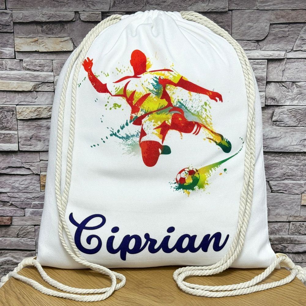 Rucsac textil personalizat cu numele copilului, creat pentru activitățile de zi cu zi, școală, grădiniță sau plimbări. Grafica dinamică adaugă un aer jucăuș, iar personalizarea cu nume transformă rucsacul într-un obiect ușor de recunoscut și îndrăgit de cei mici, potrivit pentru copii activi și curioși.